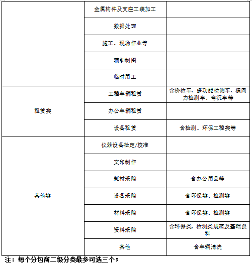 1.4采购内容及范围:对中南安全环境技术研究院股份有限公司经营类分包项目的实施单位进行入库遴选;具体标段划分详见下表。采购内容及要求详见第五章采购需求;
